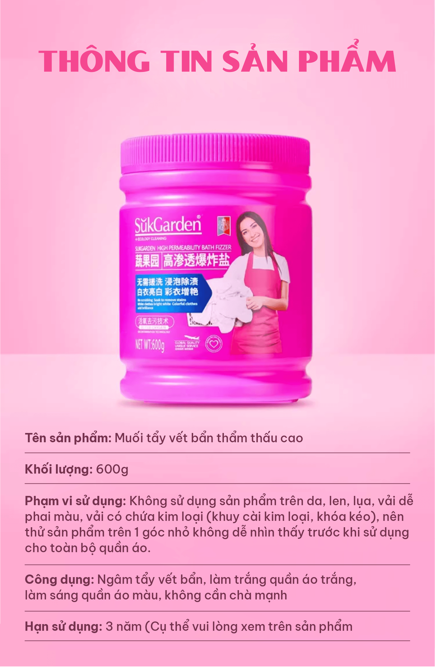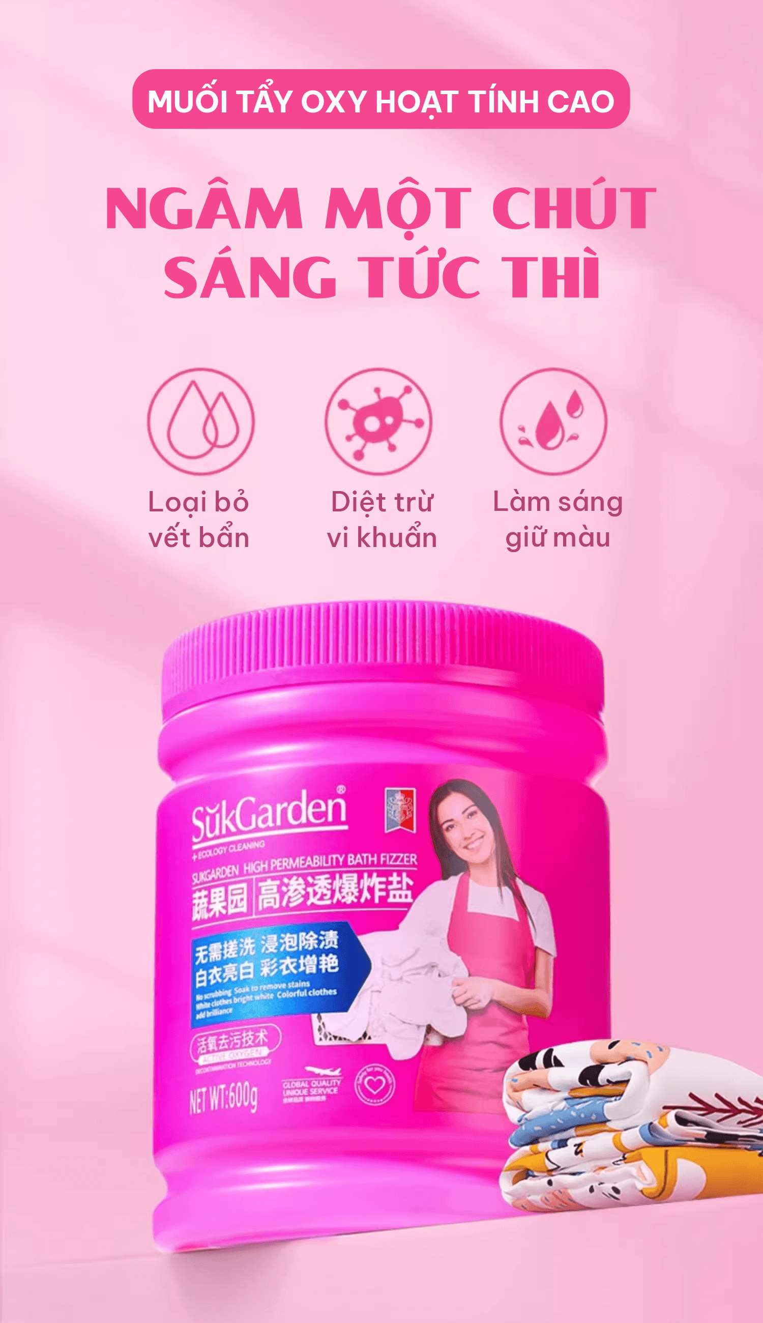SukGarden – Muối Tẩy Vết Bẩn Quần áo, Đồ Dùng Oxy Hoạt Tính Cao 600g
