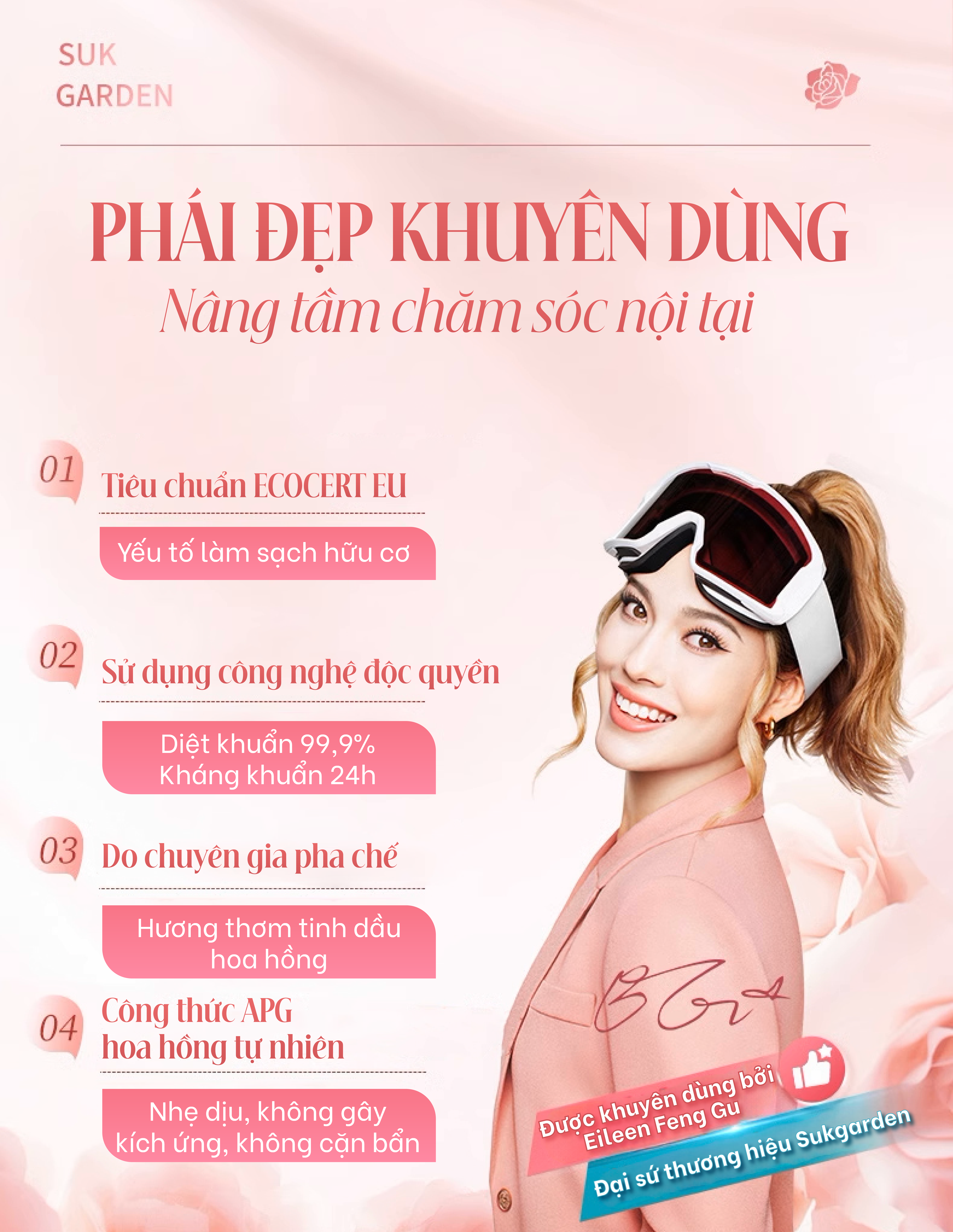 - Công thức APG hoa hồng tự nhiên: Nhẹ dịu, không gây kích ứng, không cặn bẩn