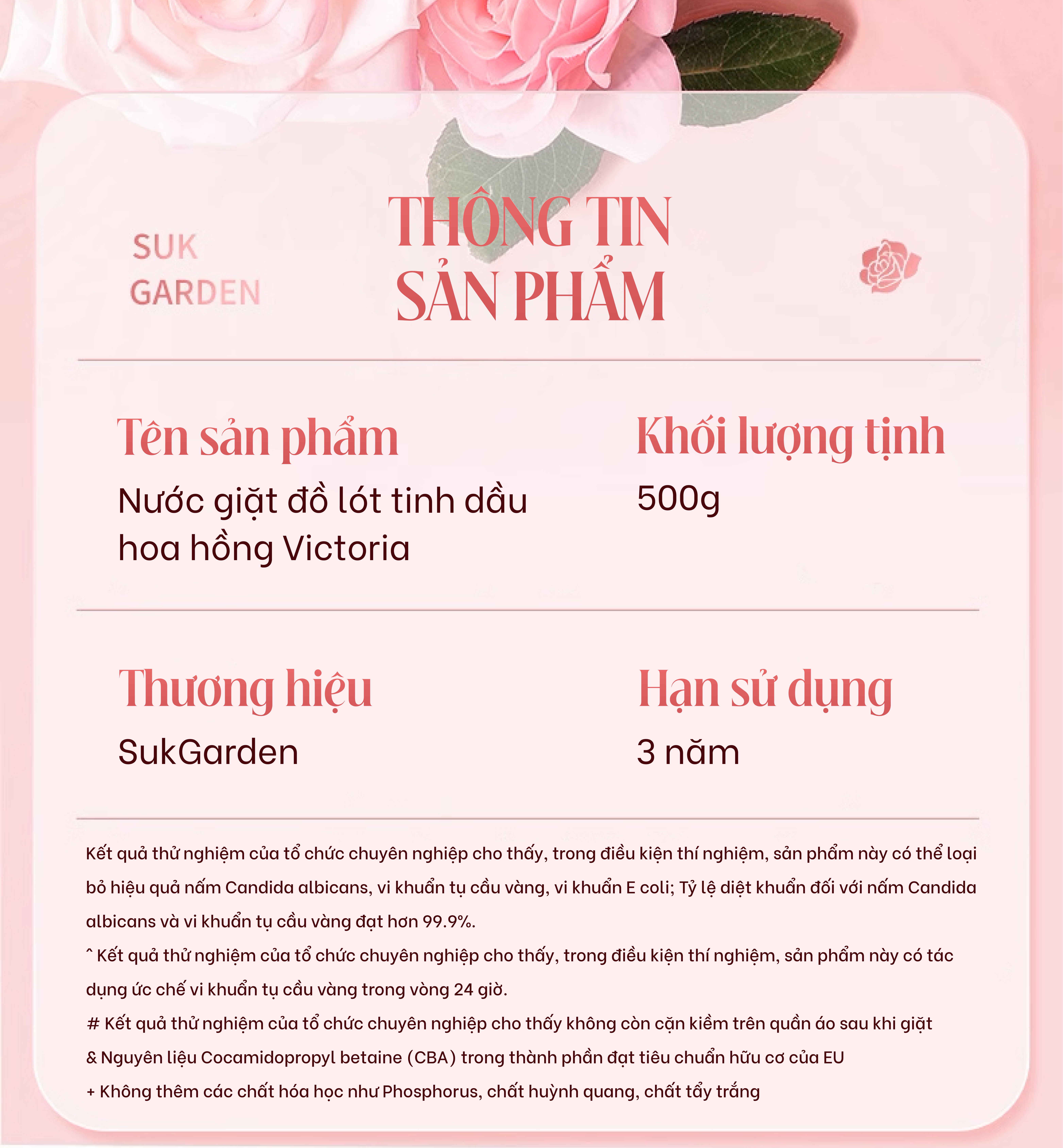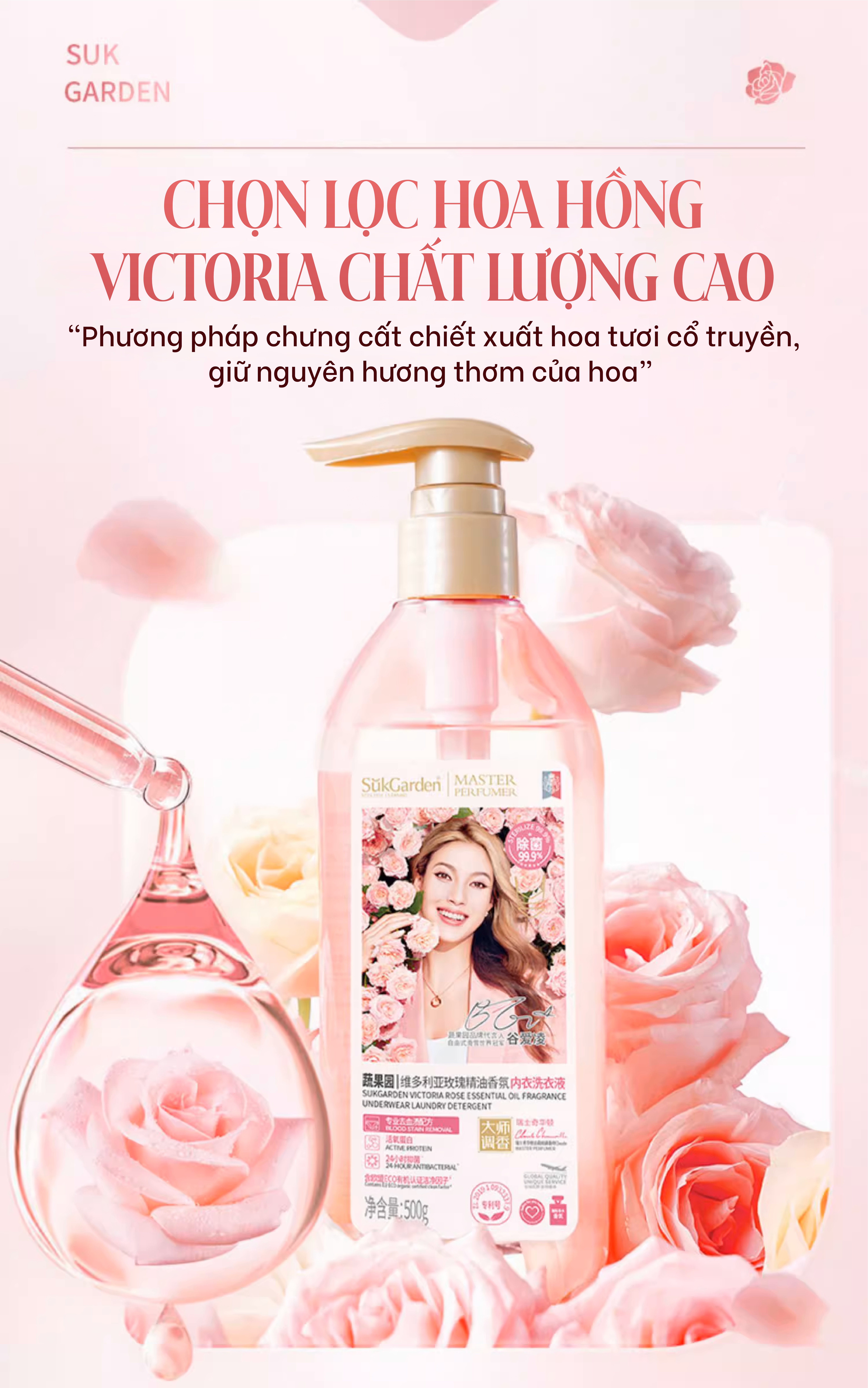SukGarden – Nước Giặt Đồ Lót Tinh Dầu Hoa Hồng Victoria 500ml