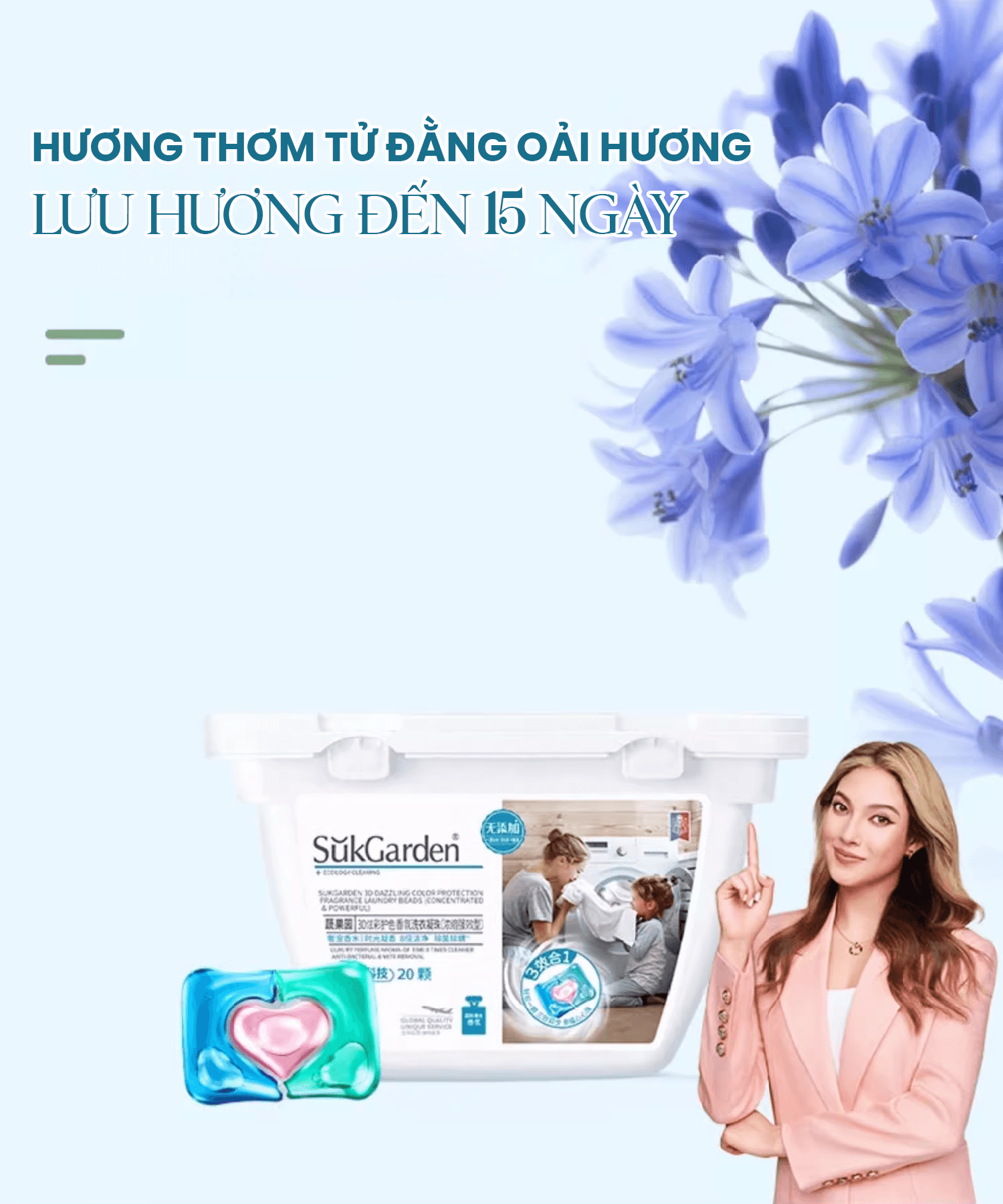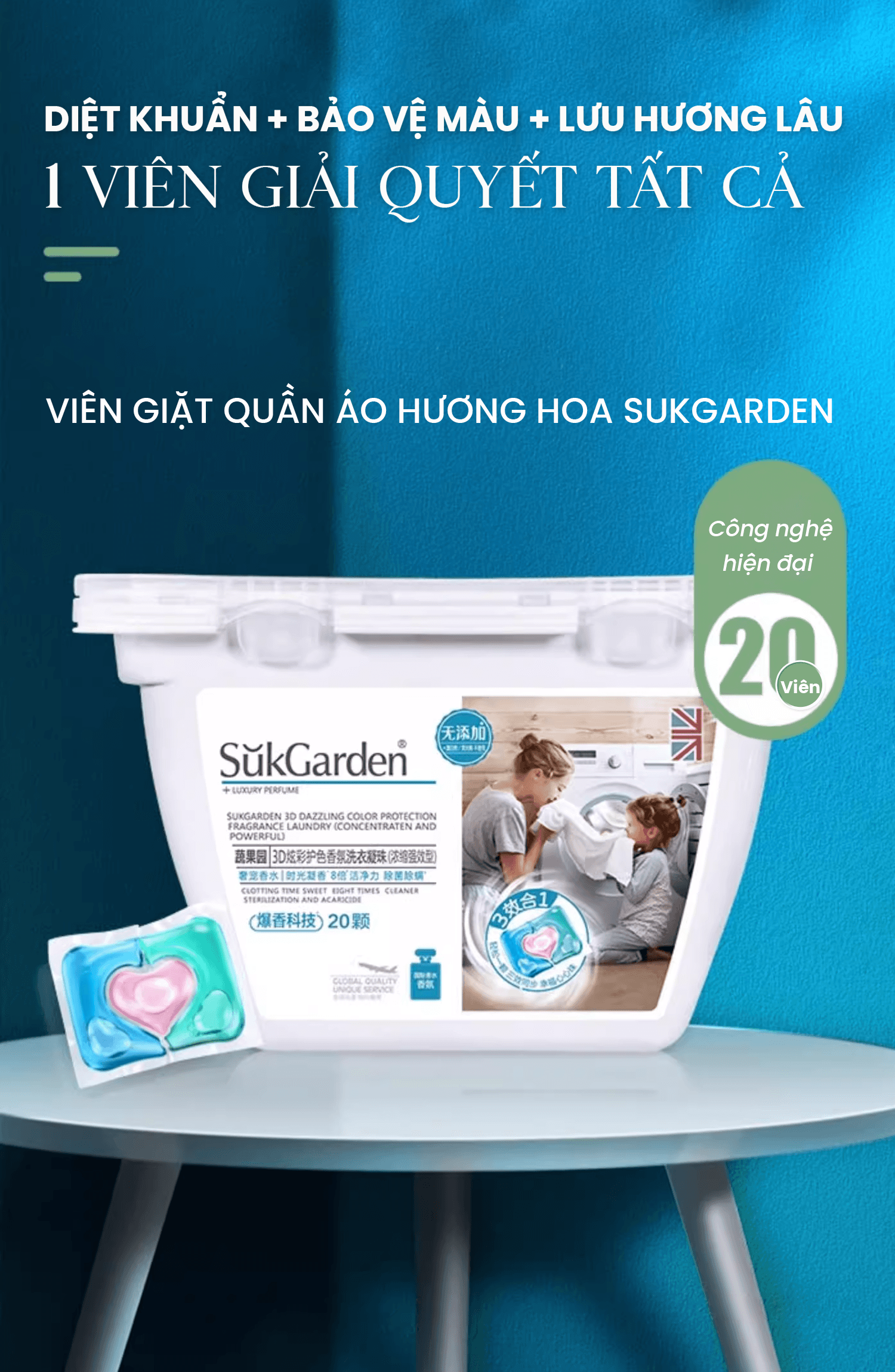 SukGarden – Viên Giặt Quần Áo SukGarden 3D Hương Hoa – 10g*20 viên